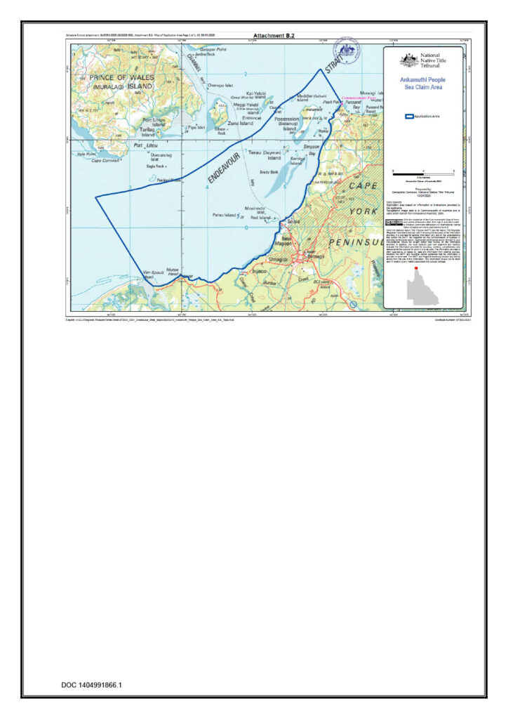 On 30 May 2025, the Ankamuthi People Sea Claim native title claimant application QUD356/2025 was filed in the Federal Court of Australia (Ankamuthi People Sea Claim).